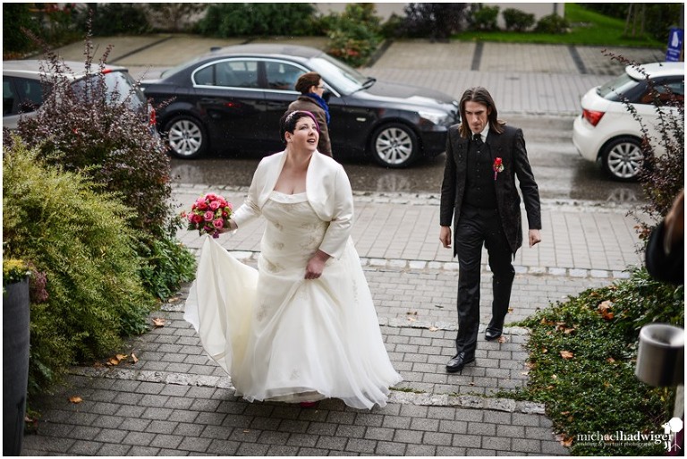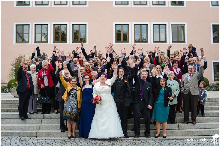 Dass es bei der anschließenden Fahrt zur Feierlocation in Karlskron anfing zu tröpfeln machte uns nichts weiter aus, da sich die beiden von vornherein für ein After-Wedding-Shooting an einem Tag nach der Hochzeit entschieden haben. Dennoch haben wir eine kurze Regenpause genutzt und in Karlskron ein kleines Hochzeitsportraitshooting gemacht, bei dem wir auch Zeit für die Familienportraits fanden – bevor im Gasthaus Haas weiter gefeiert wurde.